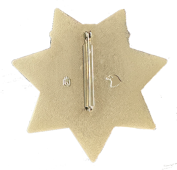 Hallmarks are markings, often the company name and/or unique design, badge manufacturers place on the back of their finished products to identify the badge maker and other aspects such as issue year and metal content. A badge with the hallmark of a respected manufacturer conveys quality, durability and authenticity and distinguishment from other badges such as “officer seconds”. Almost all agency issue badges will bear a hallmark of some kind, although there are some exceptions.